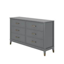 Organize your wardrobe in style with the CosmoLiving by Cosmopolitan Westerleigh 6 Drawer Dresser. The Westerleigh is accented by trendy gold hardware with six spacious drawers to hold all of your #ootd. The top surface provides room for all of your chic obsessories, and a wall anchor kit is provided to prevent tipping injuries. Available in white or graphite gray, this dresser will nail the dรฉcor game.